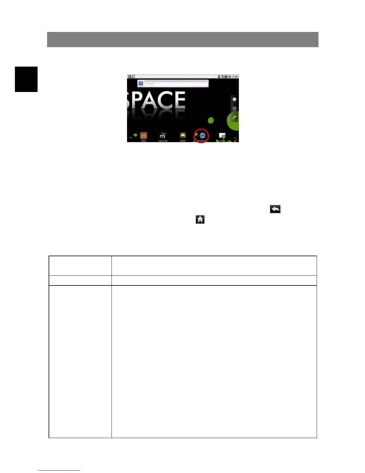 In the Home screen, tap “Settings” and choose a category: “Wireless & Networks,”