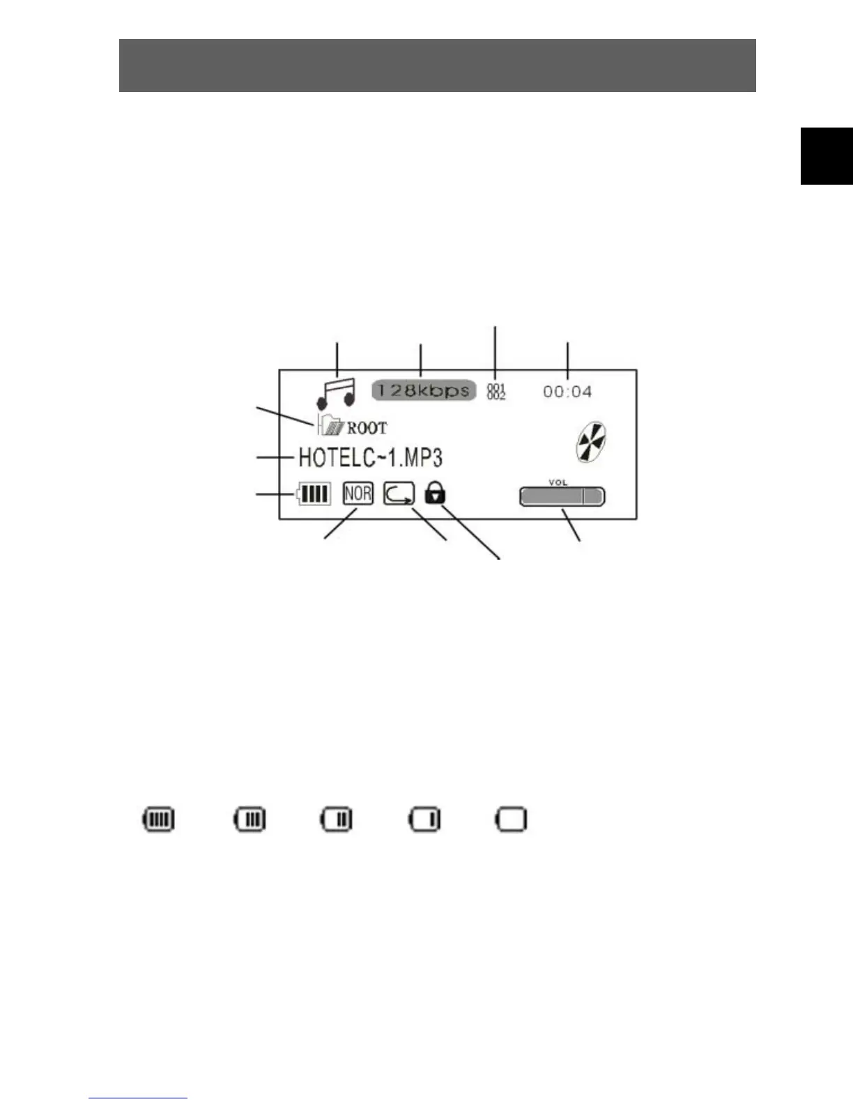 Der Batteriestatus der wiederaufladbaren internen Batterie wird mit fünf