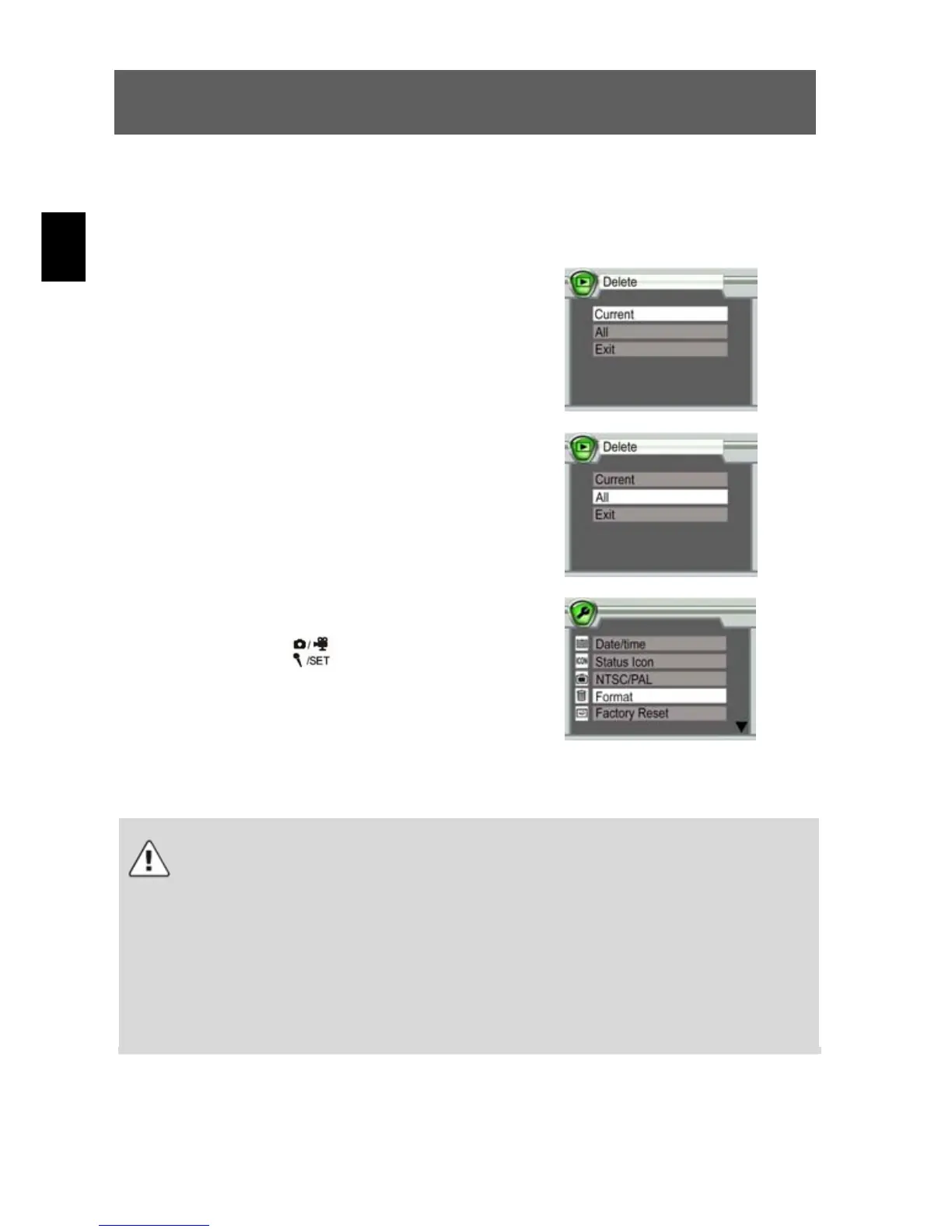 La méthode précédente peut aussi être utilisé pour effacer vidéo clips et enregistrements