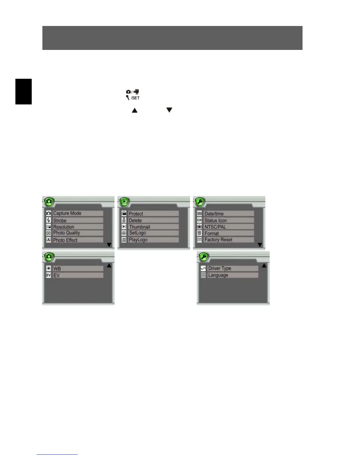 Menu mode photographie Menu mode reproduction