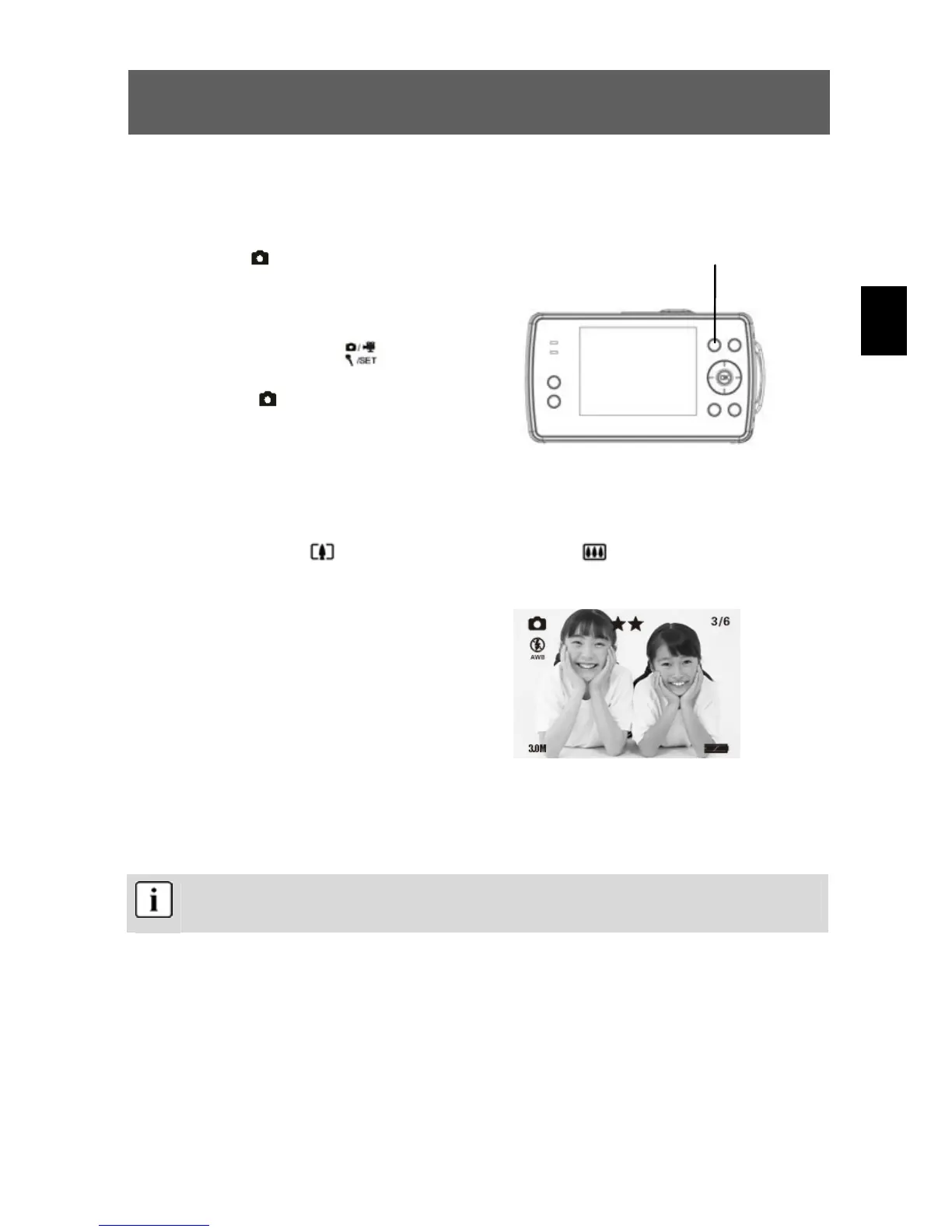 Druk de ontspanknop helemaal in om een foto te maken. Als u een signaaltoon