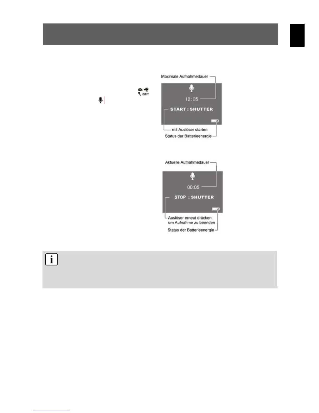 Der Ton wird im WAV-Format aufgezeichnet. Die Länge hängt von der