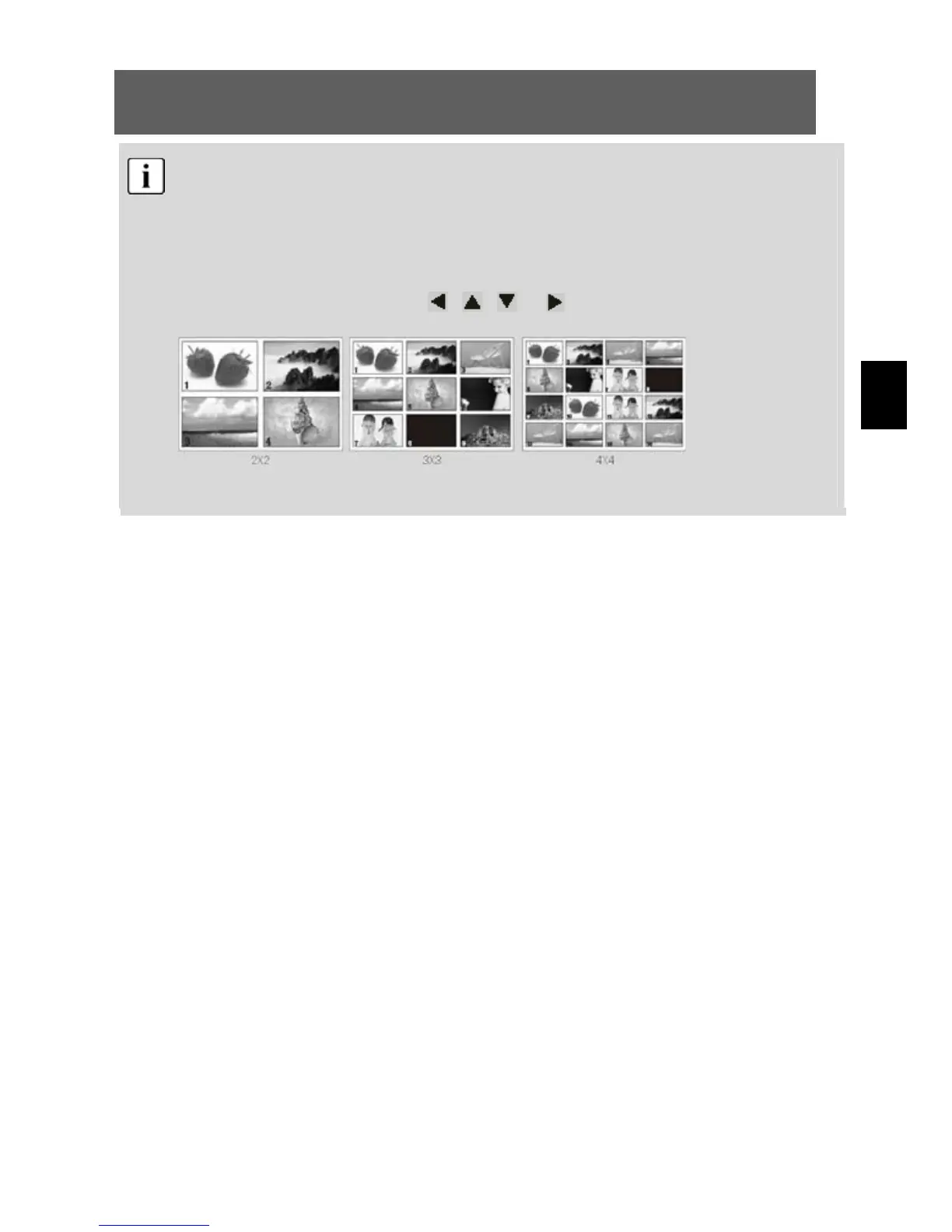 Há 3 modos de visualização: 2x2, 3x3 y 4x4, pelo qual 4, 9 o 16 arquivos