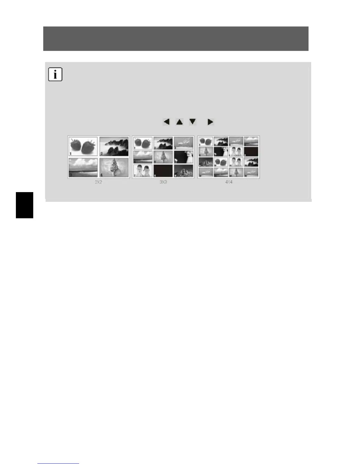 Hay 3 modos de visualización: 2x2, 3x3 y 4x4, por lo que 4, 9 o 16 archivos