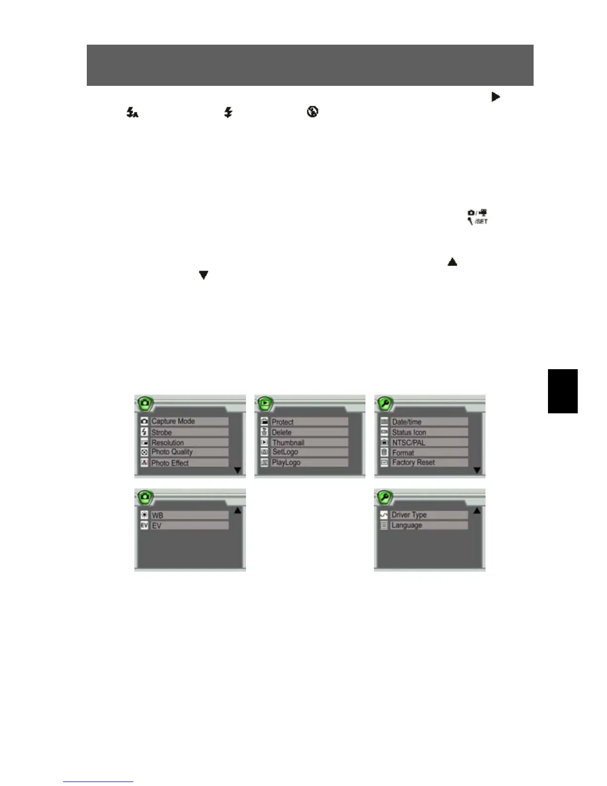 La fotocamera è dotata di un menu per l'impostazione, l'immagine e la riproduzione.
