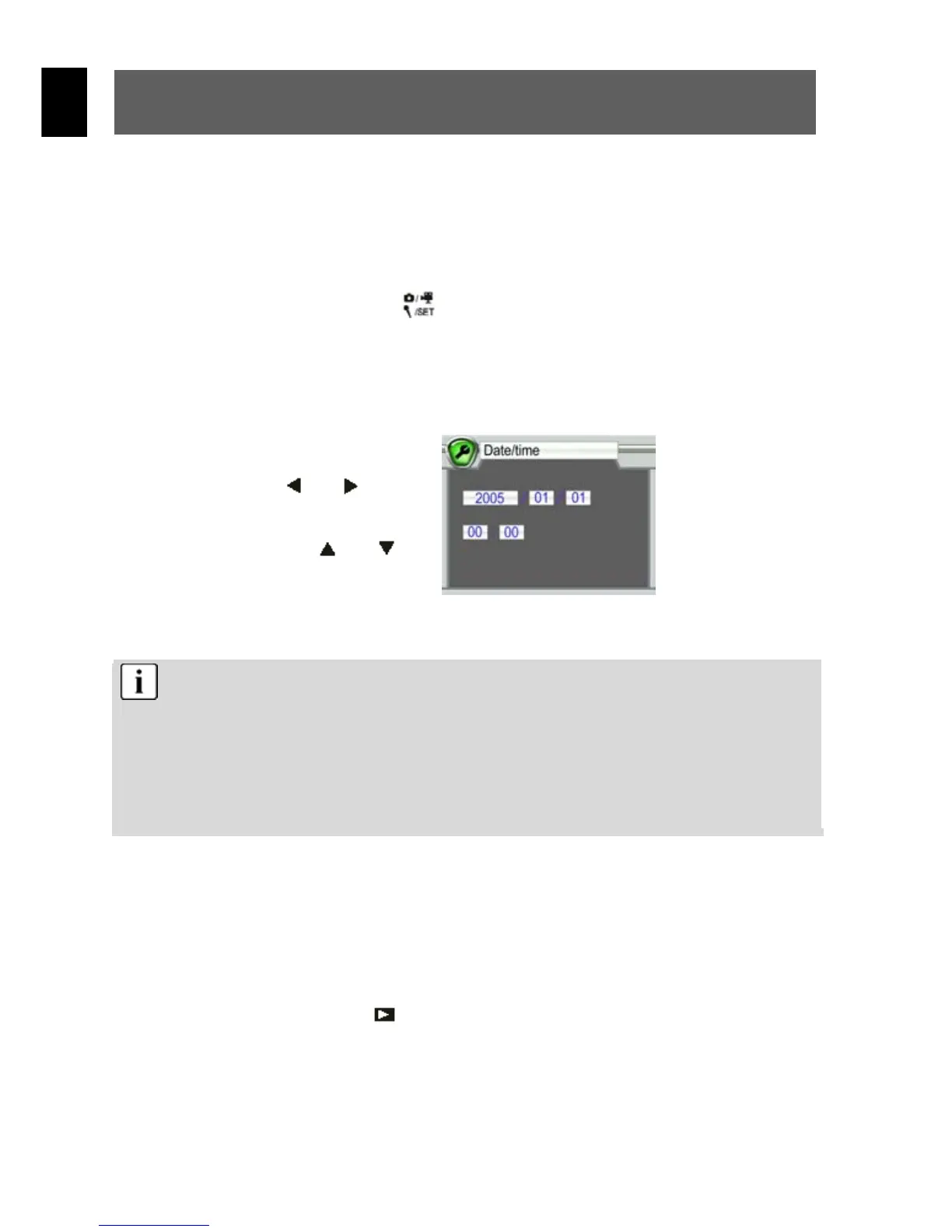Das Datum und die Uhrzeit kann durch die Kamera nur im Wiedergabe-Modus