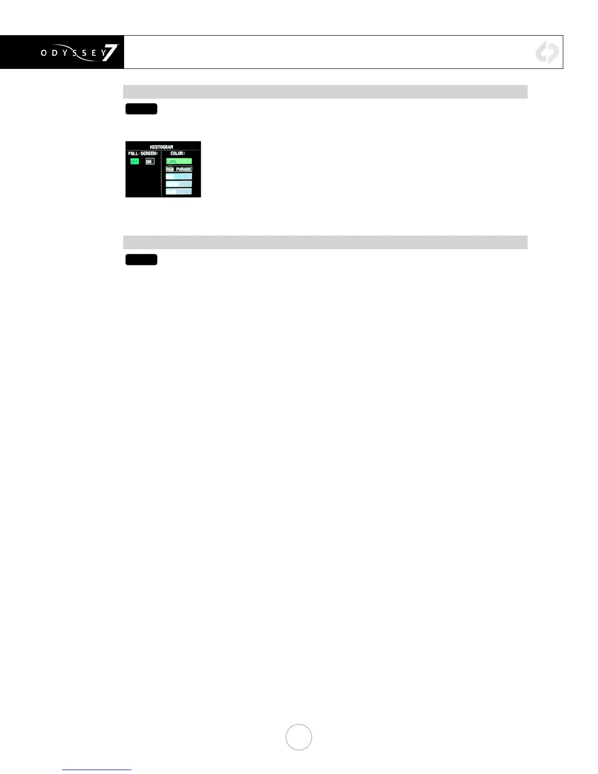 [RGB PARADE], or as the individual primary colors only [RED] [GREEN] [BLUE].
