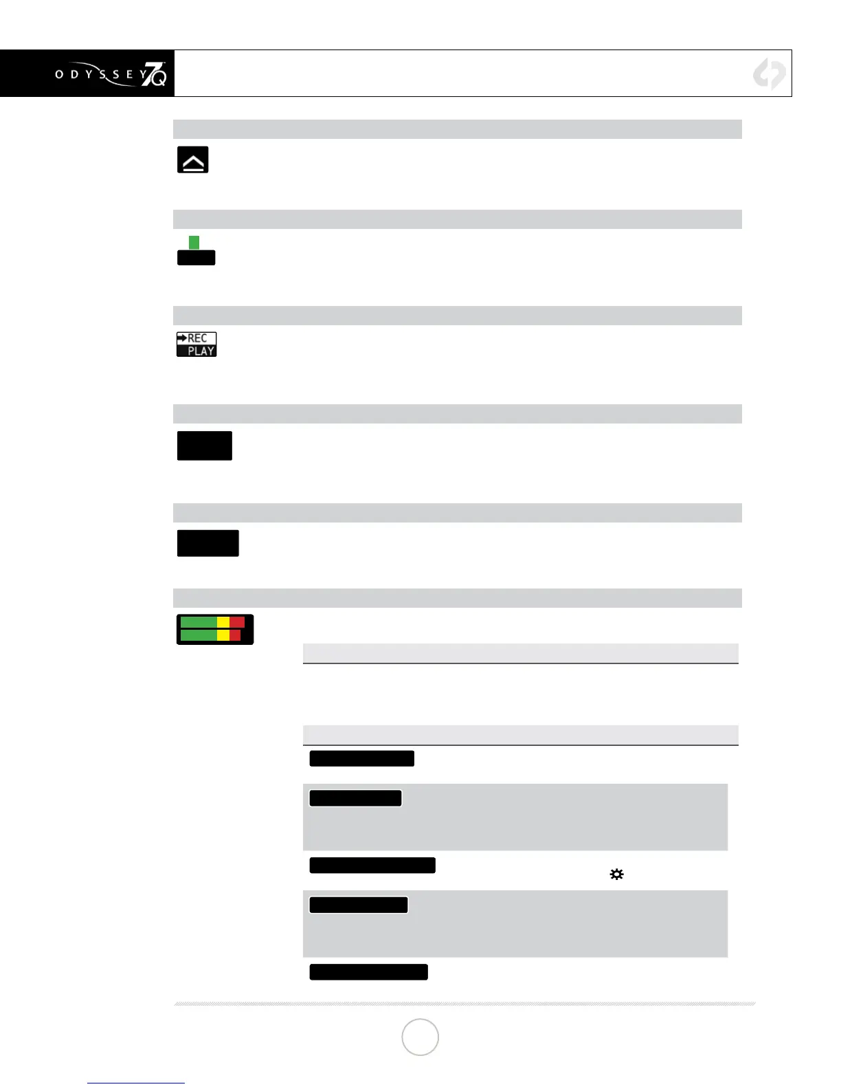 Displays current status as to whether Odyssey7Q is in RECORD or PLAY mode. Tapping