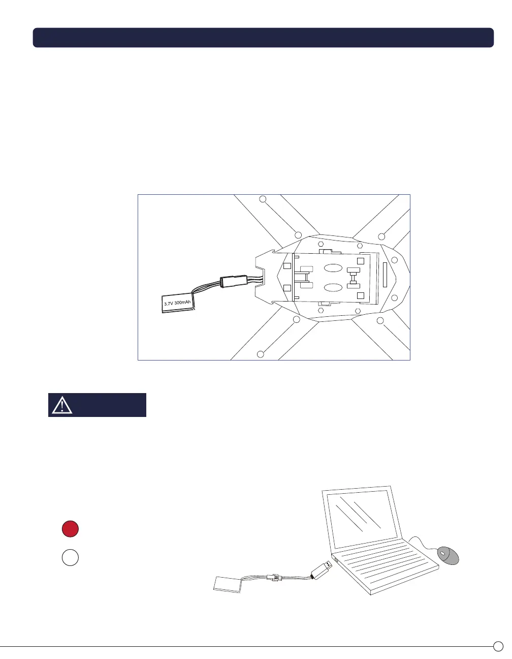 light will illuminate when charging begins. The light will go out when the Drone’s battery is fully charged. At that time,