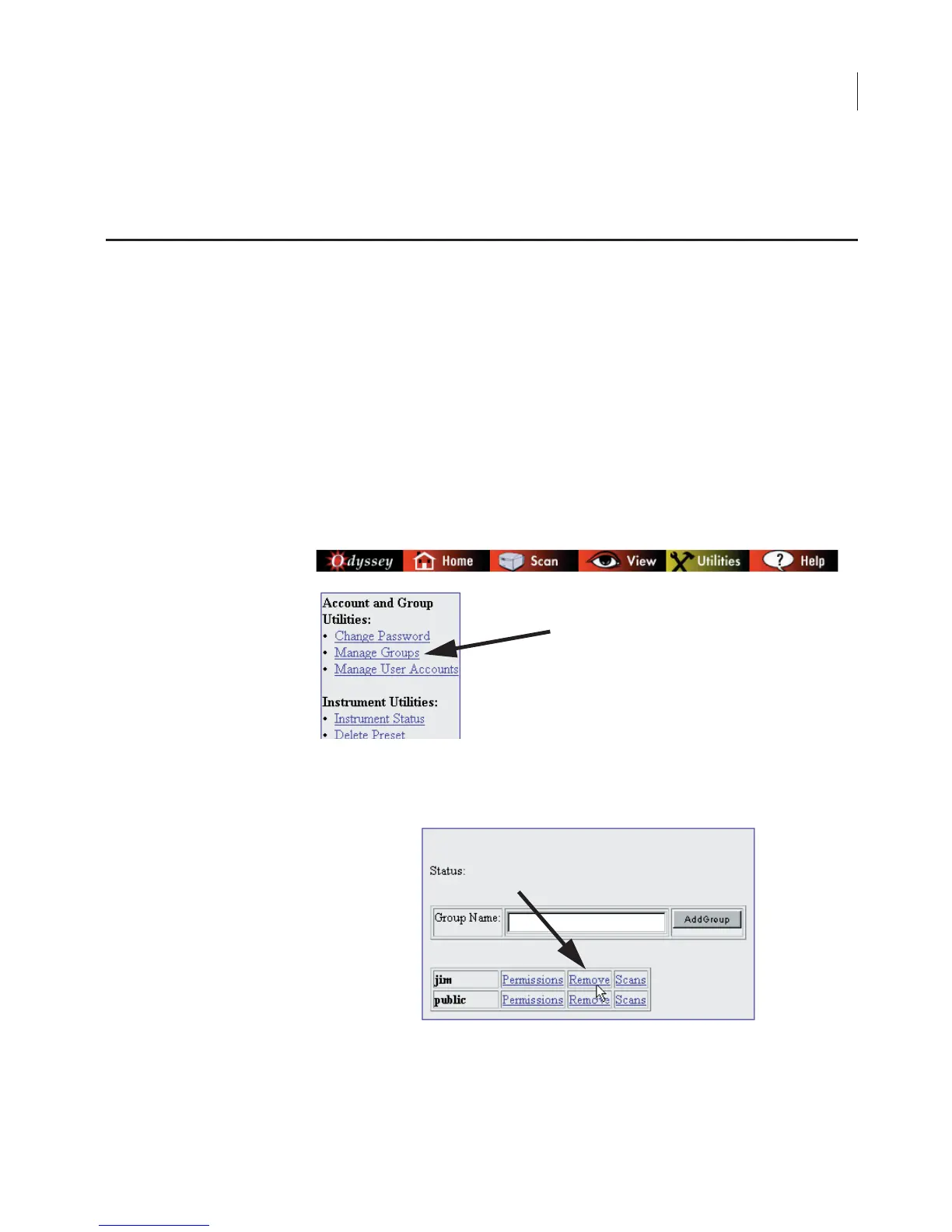 1) Click the Manage Groups link on the Utilities page.