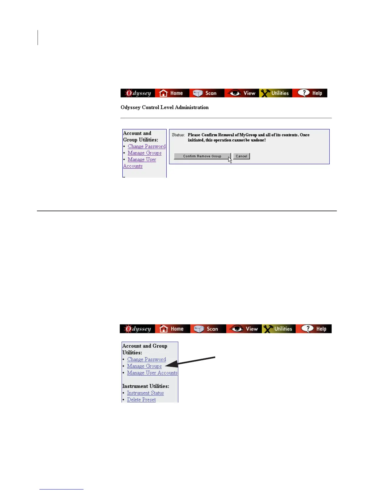 1) Click the Manage Groups link on the Utilities page.
