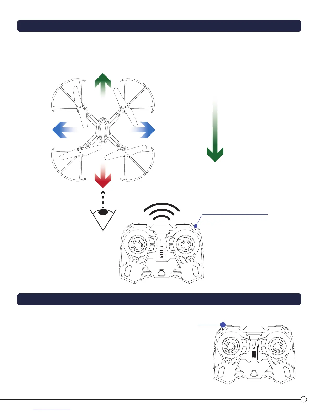 Pushing the direction (right) stick forward flies your Spartan Drone in the direction of its front