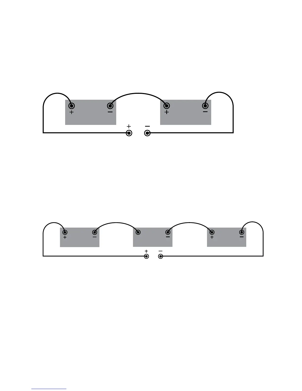 series. As shown in the top illustration, the negative of Battery 1 is wired to the positive