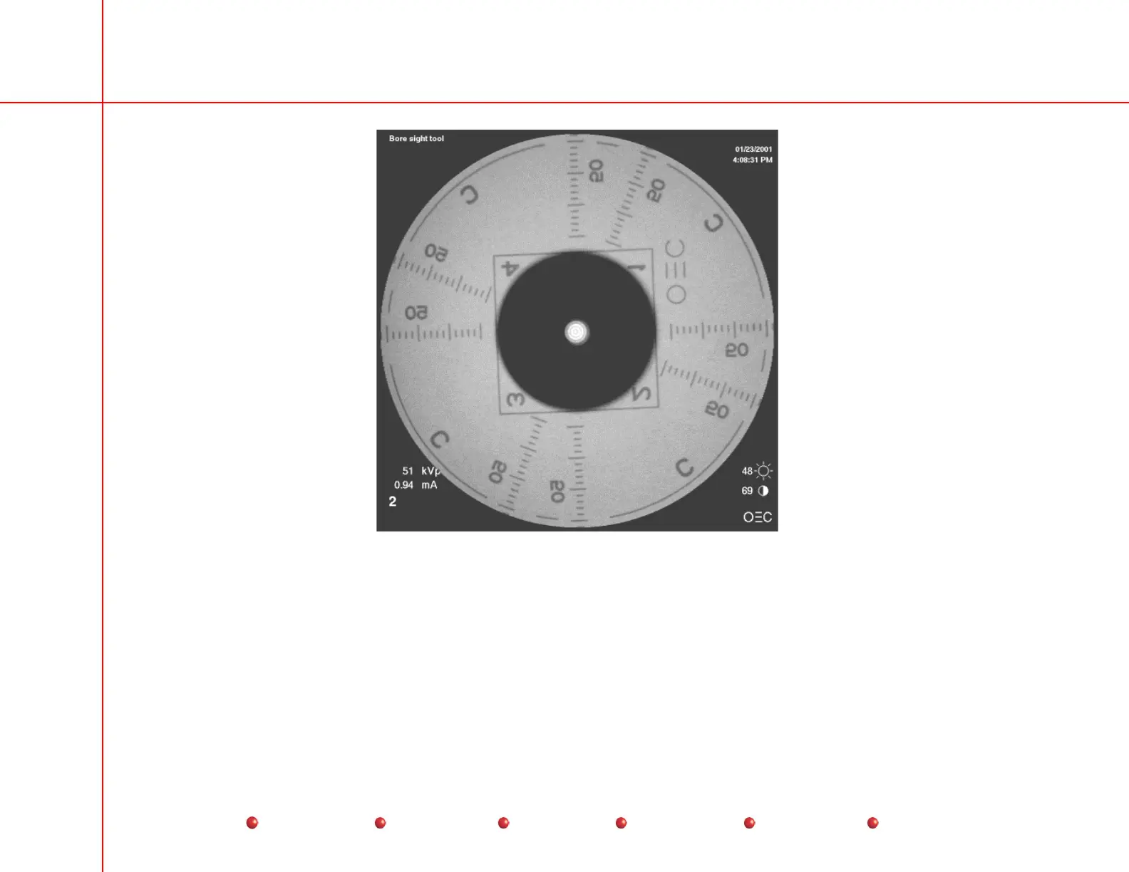 a. With the bore site tool attached to the bottom of the collimator, loosen the collimator set screws (see following picture).