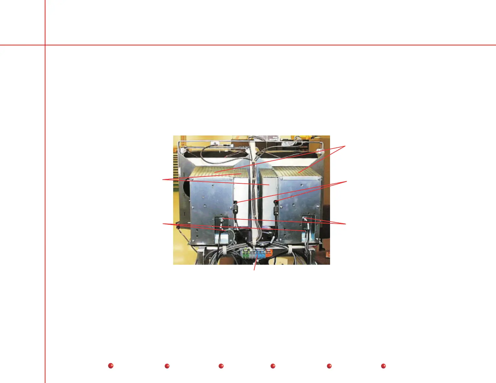 each monitor holds the CRT, deflection electronics, and video circuits. The smaller cage holds the switch mode power