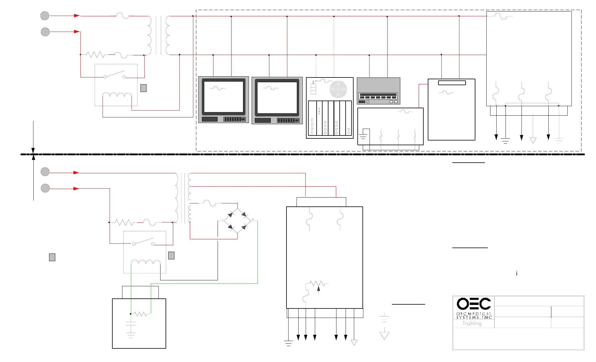 2. Power relay K1 in the C-arm and power relay K3 in the Workstation