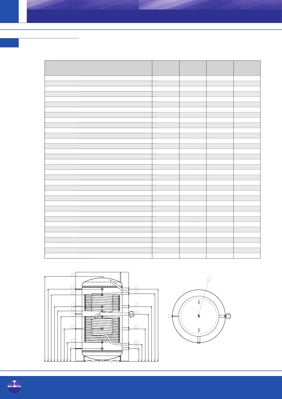 Smooth-pipe heat exchanger* top surface / volume [m²] / [l] 2.2 / 14.2 2.6 / 17 2.8 / 18.6