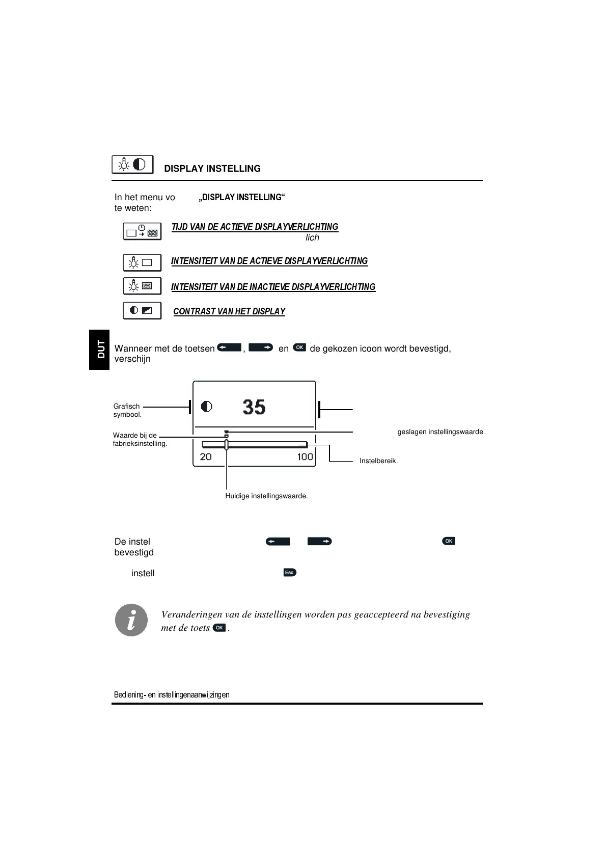 Veranderingen van de instellingen worden pas geaccepteerd na bevestiging
