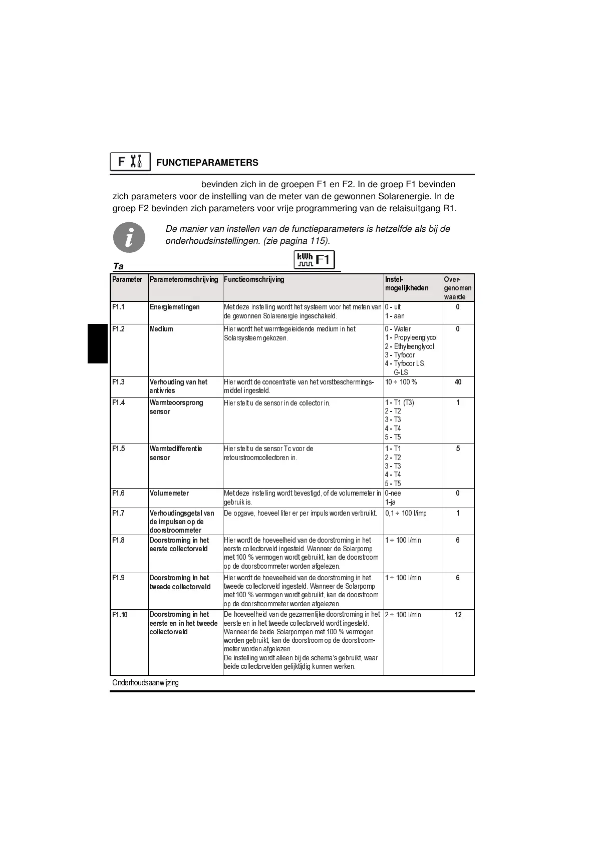 De functieparameters bevinden zich in de groepen F1 en F2. In de groep F1 bevinden