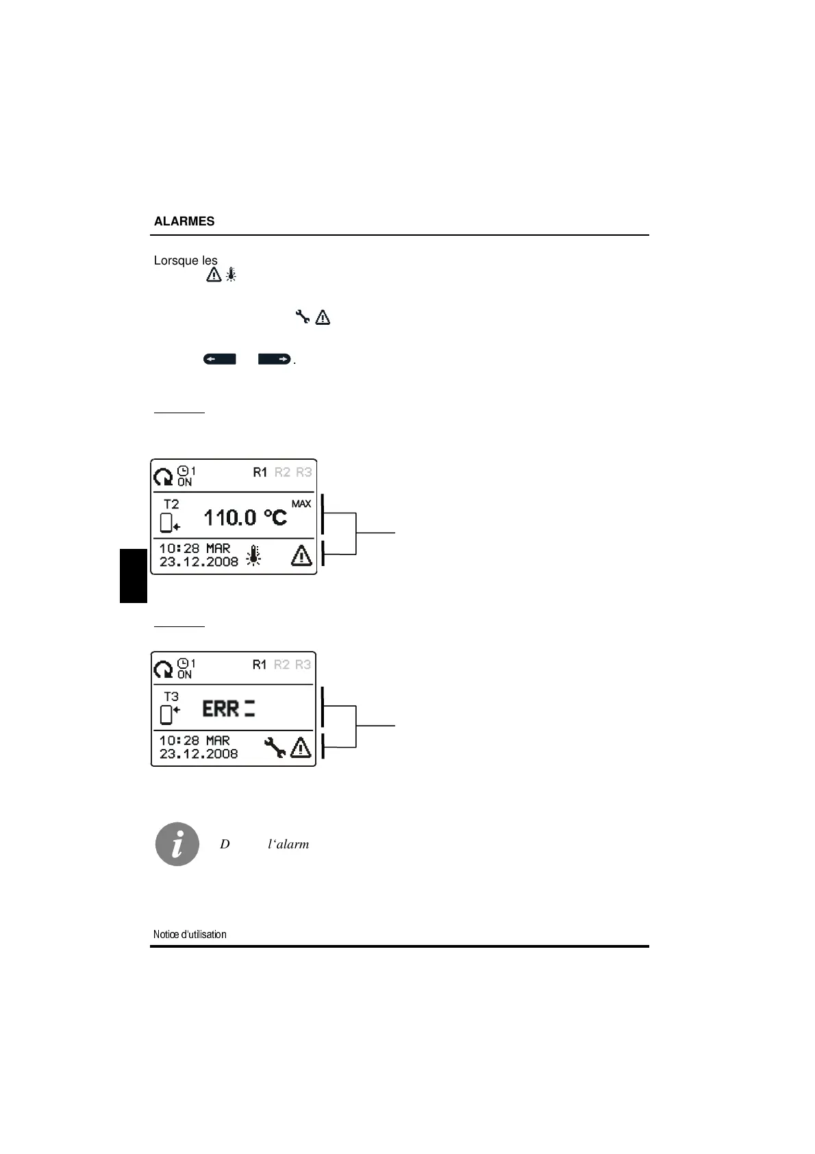 Alarme! La température maximale réglée est dépassée