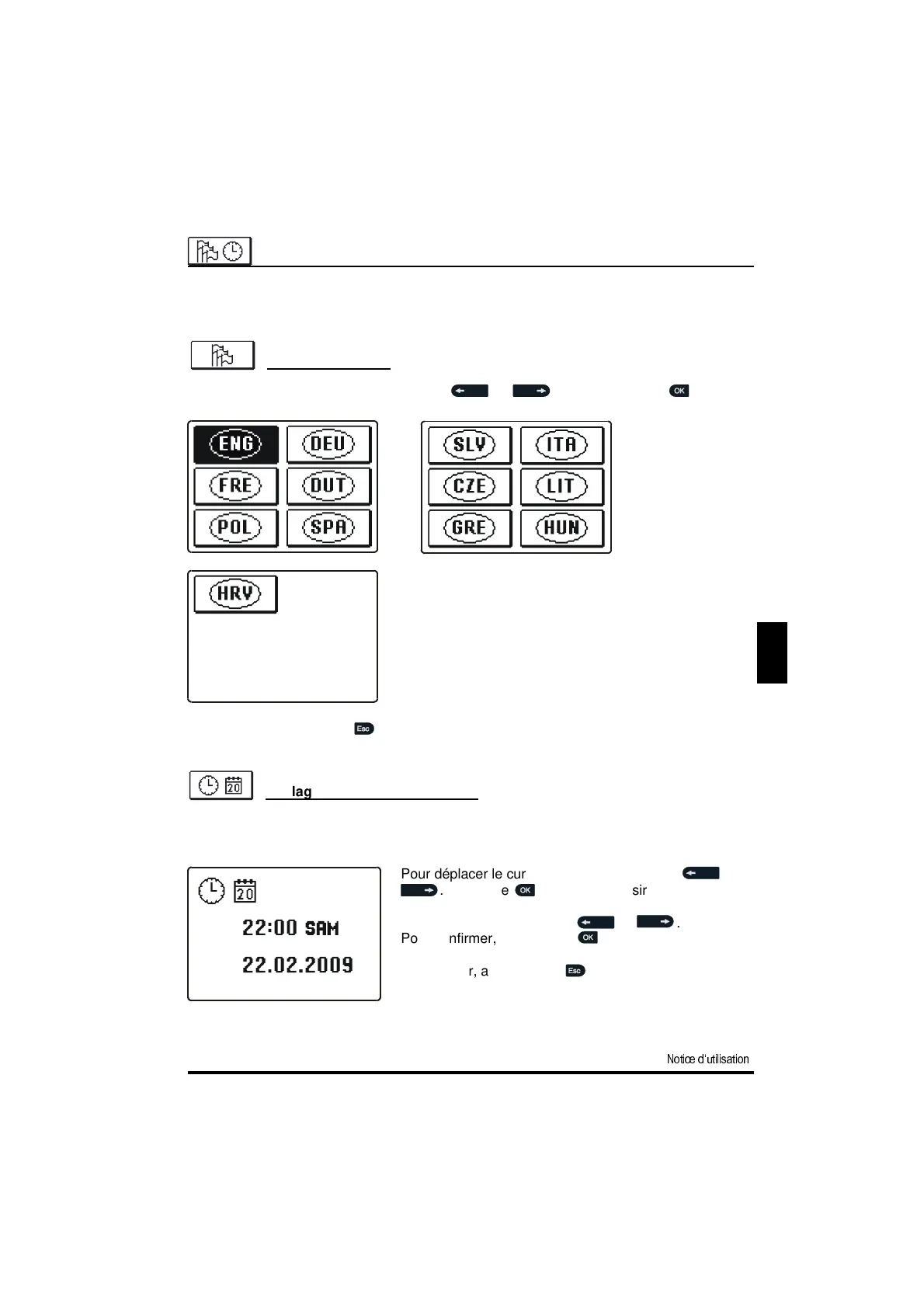 Pour sélectionner la langue, appuyez sur ou et confirmez avec .