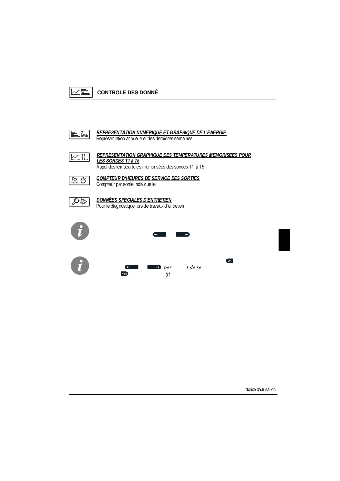 Ce menu présente plusieurs icônes donnant accès à différents types de fonctionnement