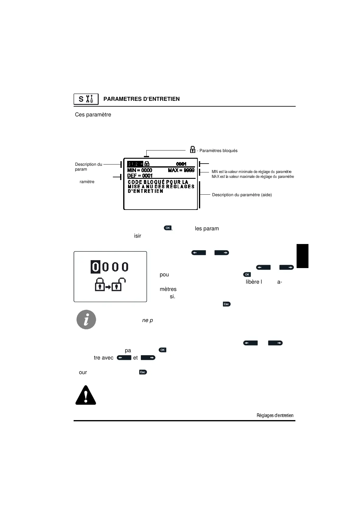 Les réglages des paramètres d‘entretien et de fonctions sont bloqués.