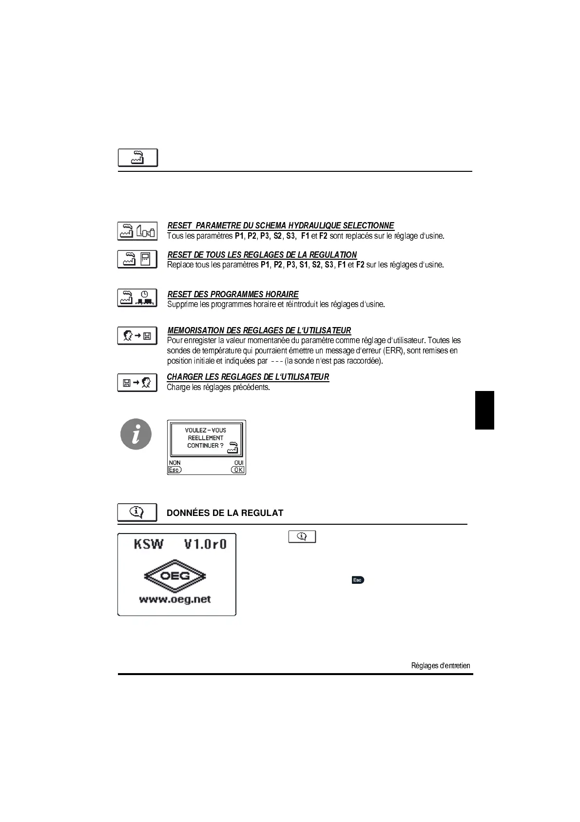 Reprend les données du software nécessaires à quelques réglages de la régulation.