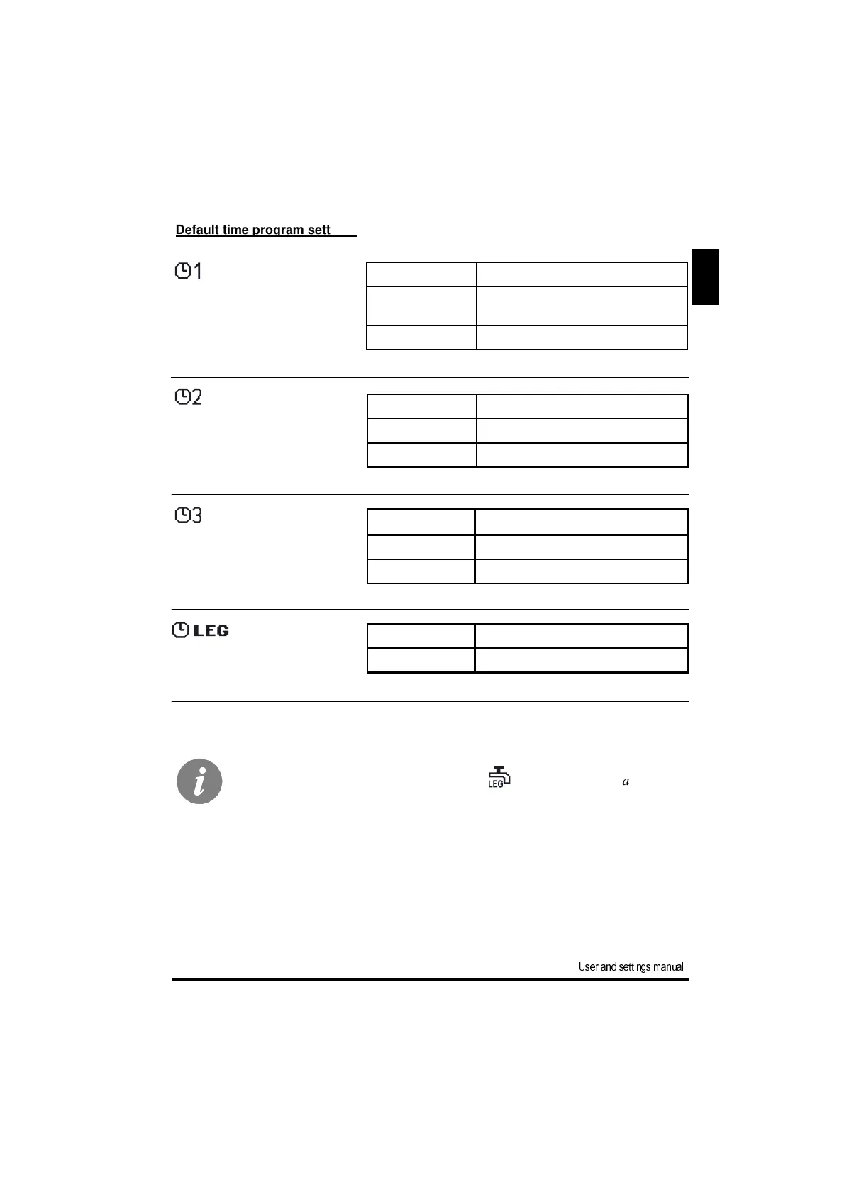 Default time program settings