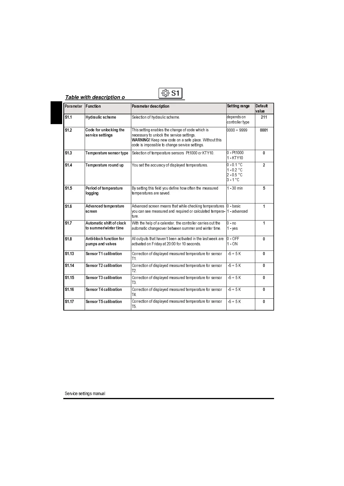 Service settings manual