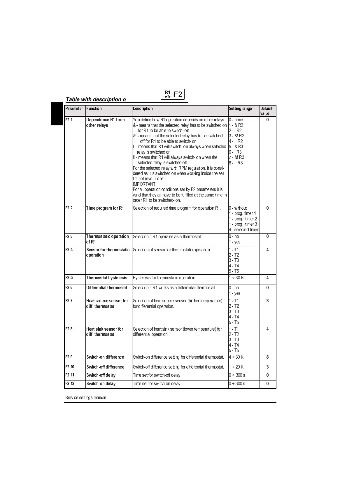 For all ope ration conditions set by F2 parameters it is