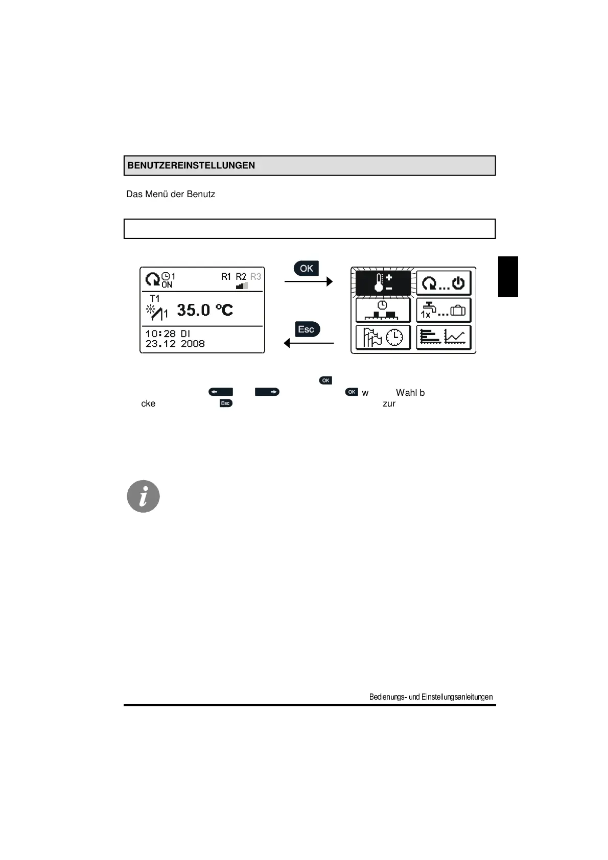 Das Menü der Benutzereinstellungen wird mit Hilfe von graphischen Symbolen ausge-