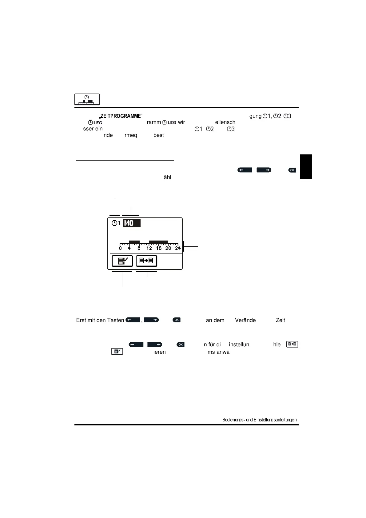 Um das Zeitprogramm zu ändern, muss man erst mit den Tasten , und
