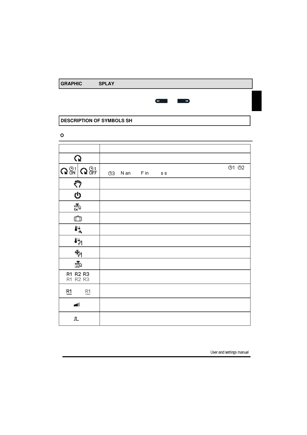 DESCRIPTION OF SYMBOLS SHOWN ON THE DISPLAY