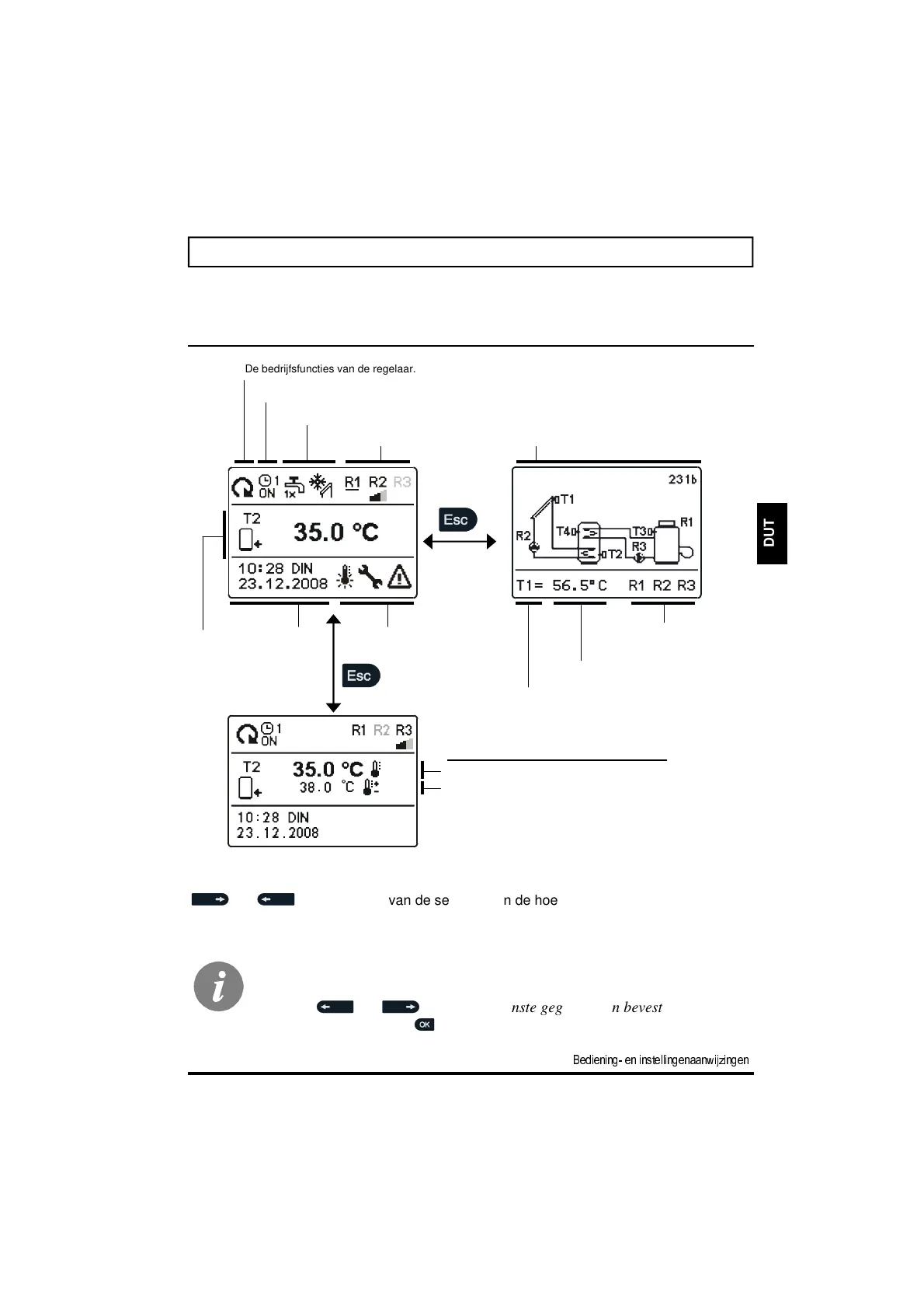 Om de temperatuur en andere gegevens te kunnen zien, maakt u gebruik van de toetsen