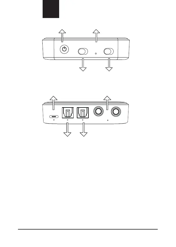 ∙ Controles: Interruptor multifunción, selección TX/RX, selección AUX/SPDIF.