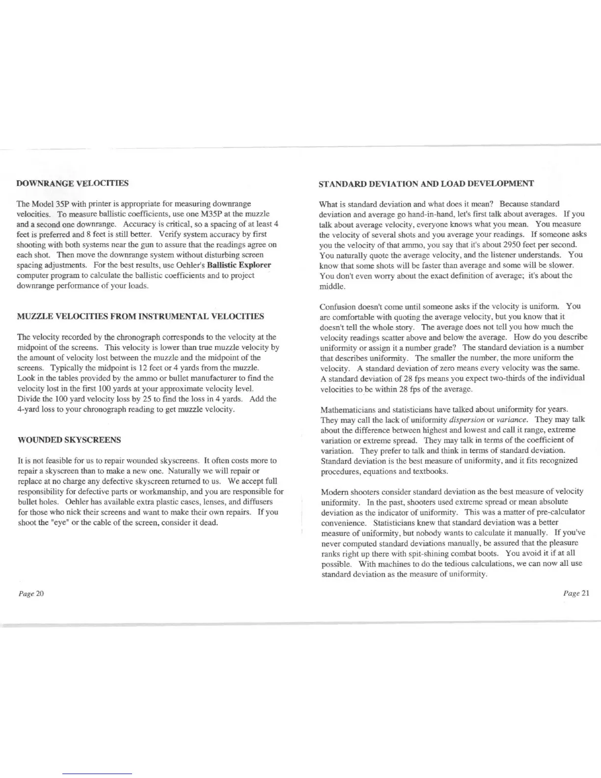spacing adjustments. For the best results, use Oehler's Ballistic