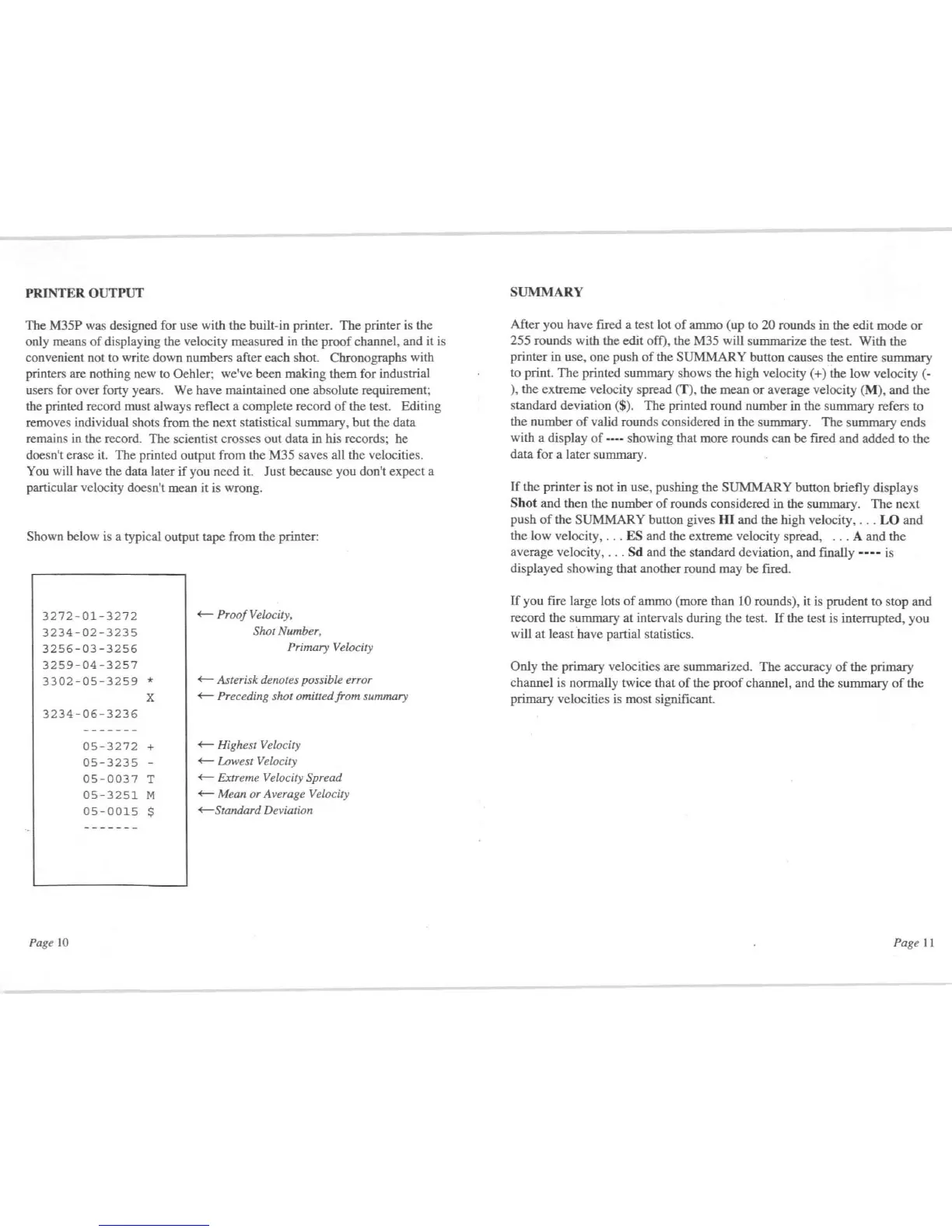 255 rounds with the edit off), the M35 will summarize the test. With the