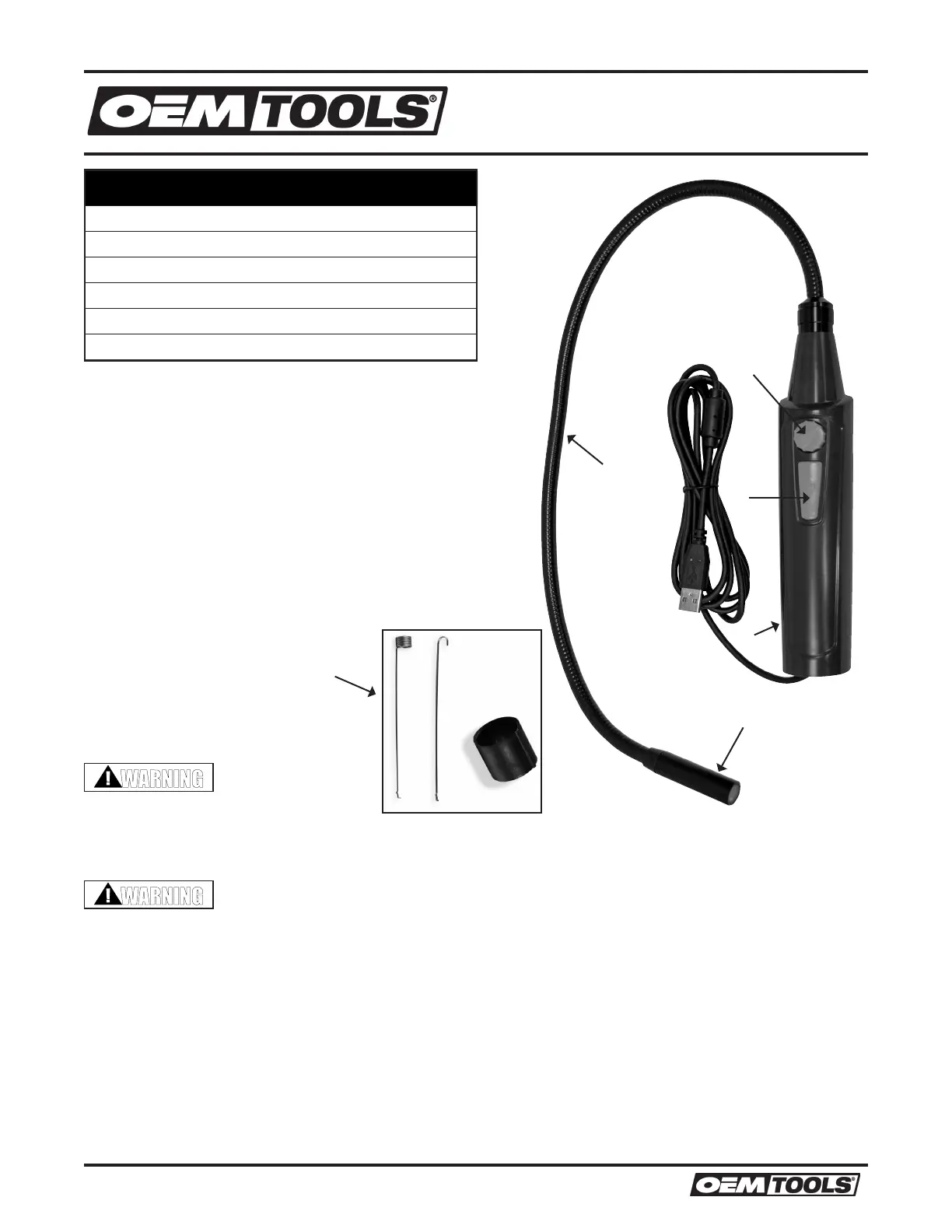 • The Video Borescope is intended for industrial applications only. Do not use it for personal or medical use in any