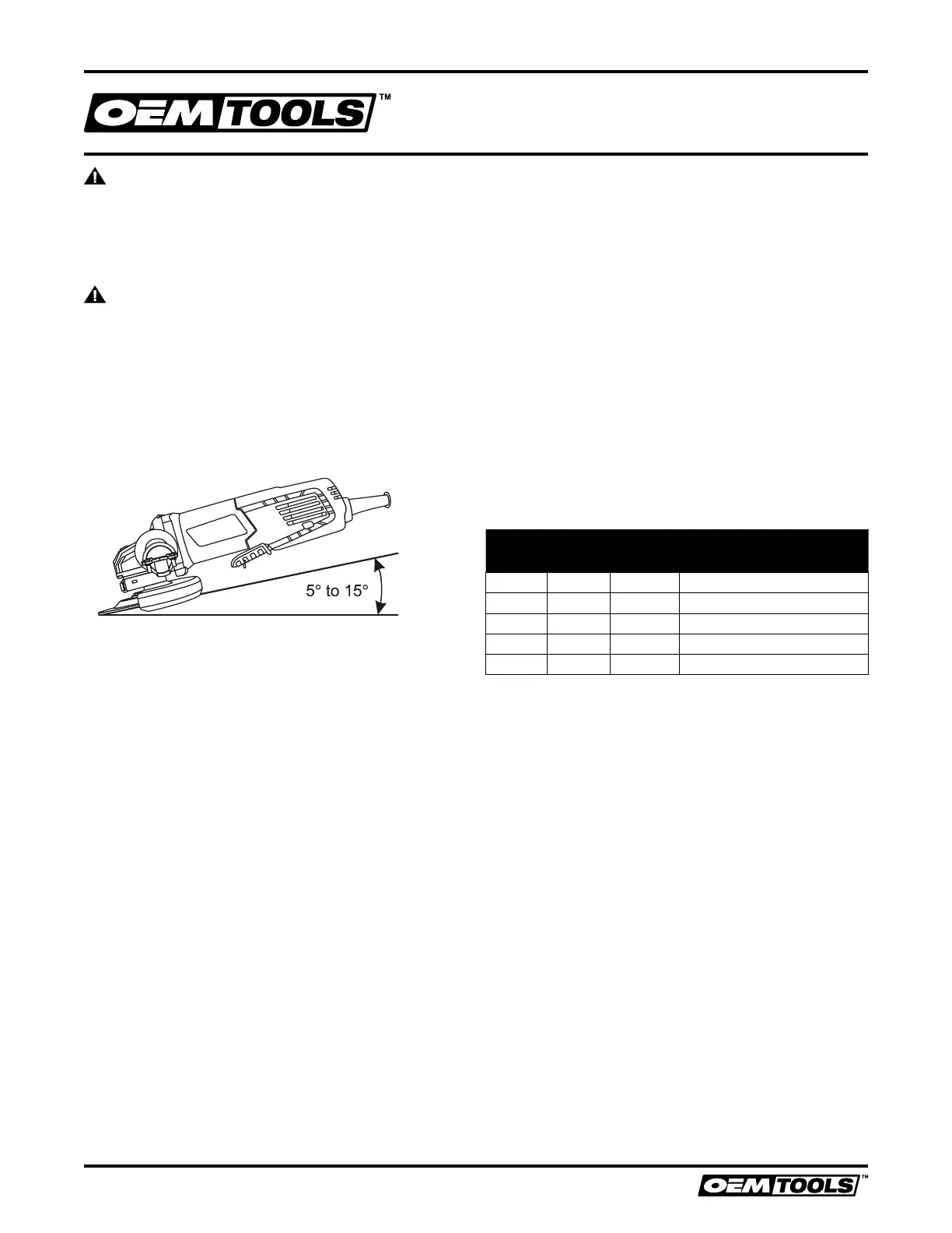 6. For best results keep the angle grinder tilted at