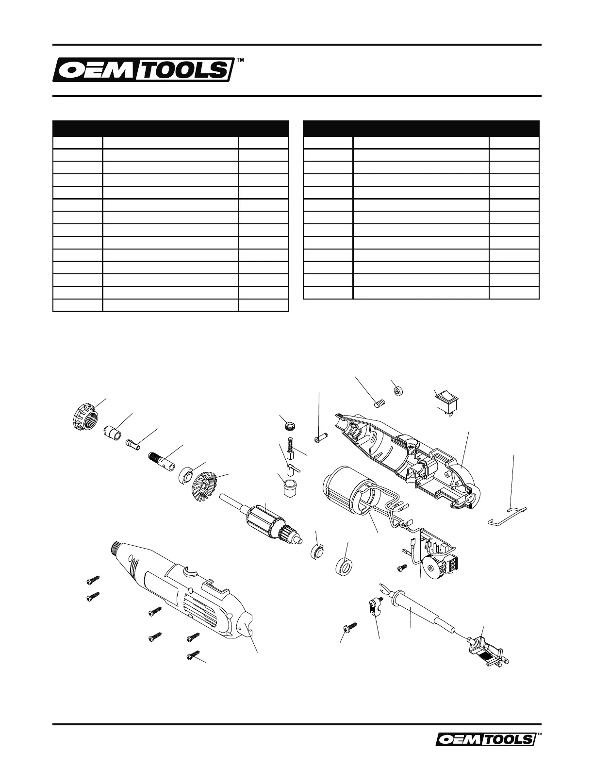 Not all components of the Rotary Tool are replacement items, but are illustrated as a convenient reference for location