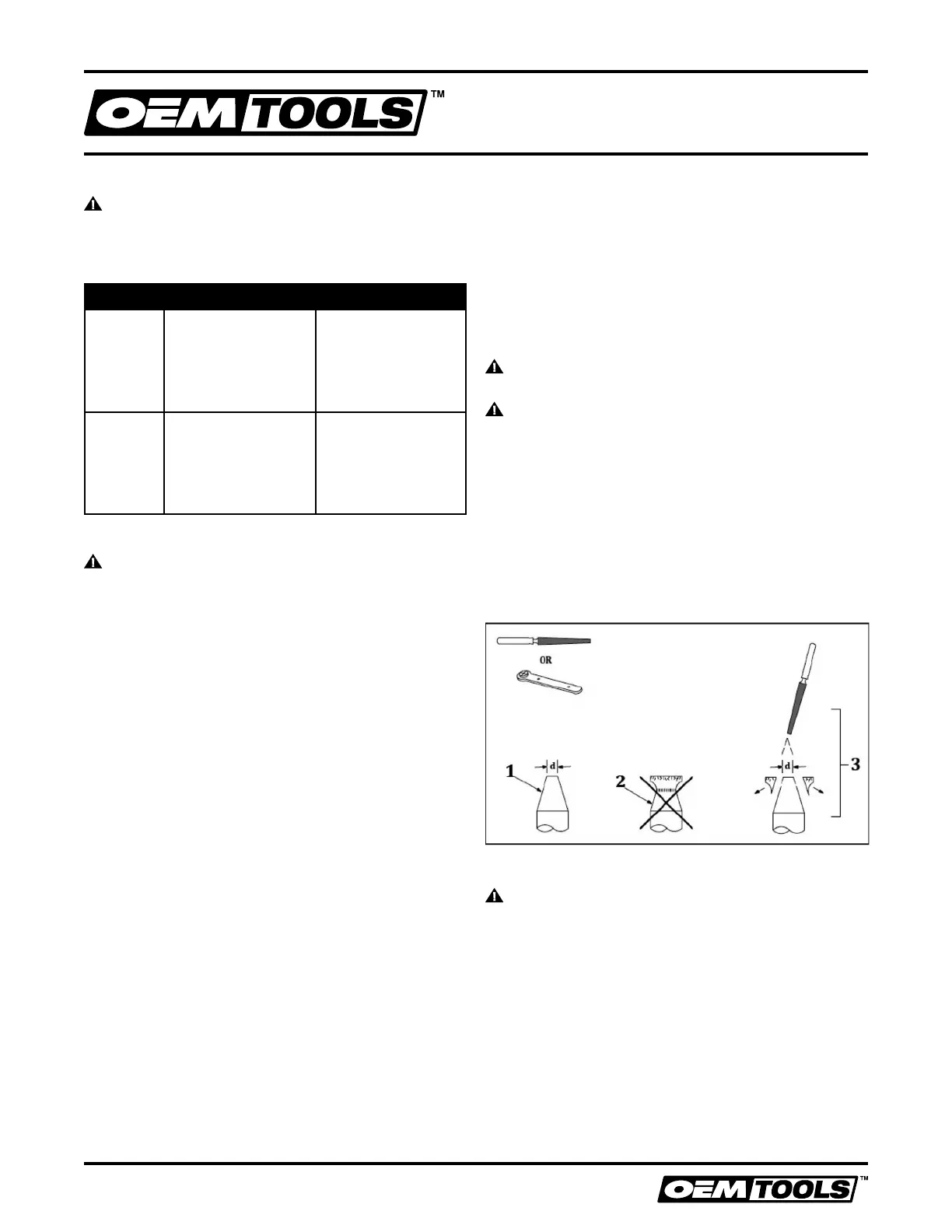 the operator understands that OEMTOOLS™ cannot be held