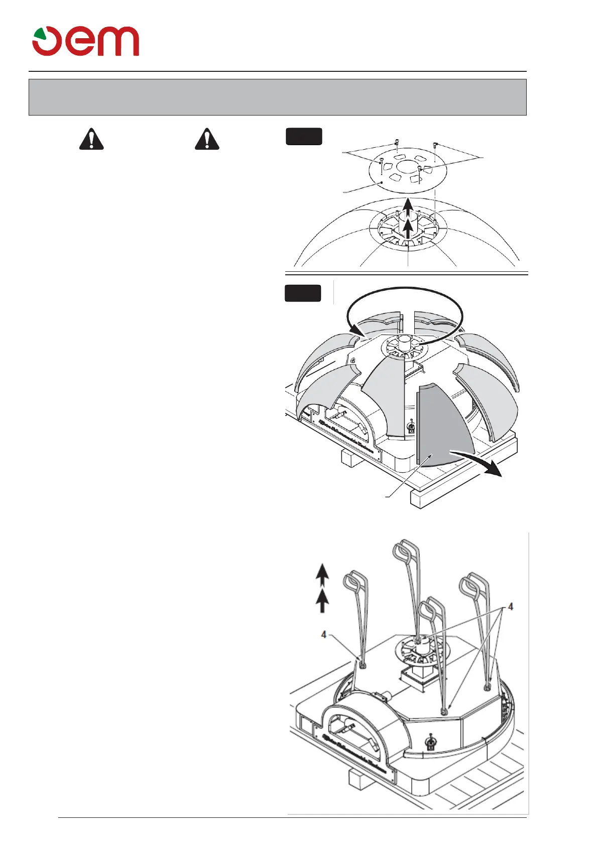 • Vier Seile (4) an den Ösen-Schrauben des Ofens und