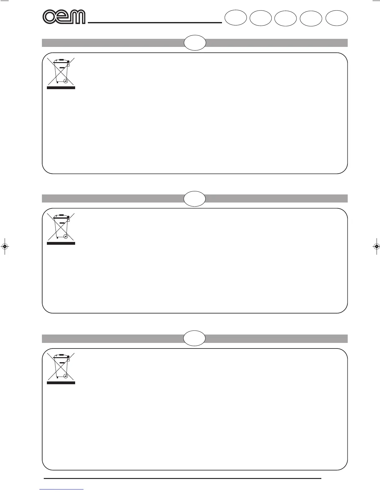 OEM electrical equipment is marked with a pictogram of a garbage can inside a barred circle. This