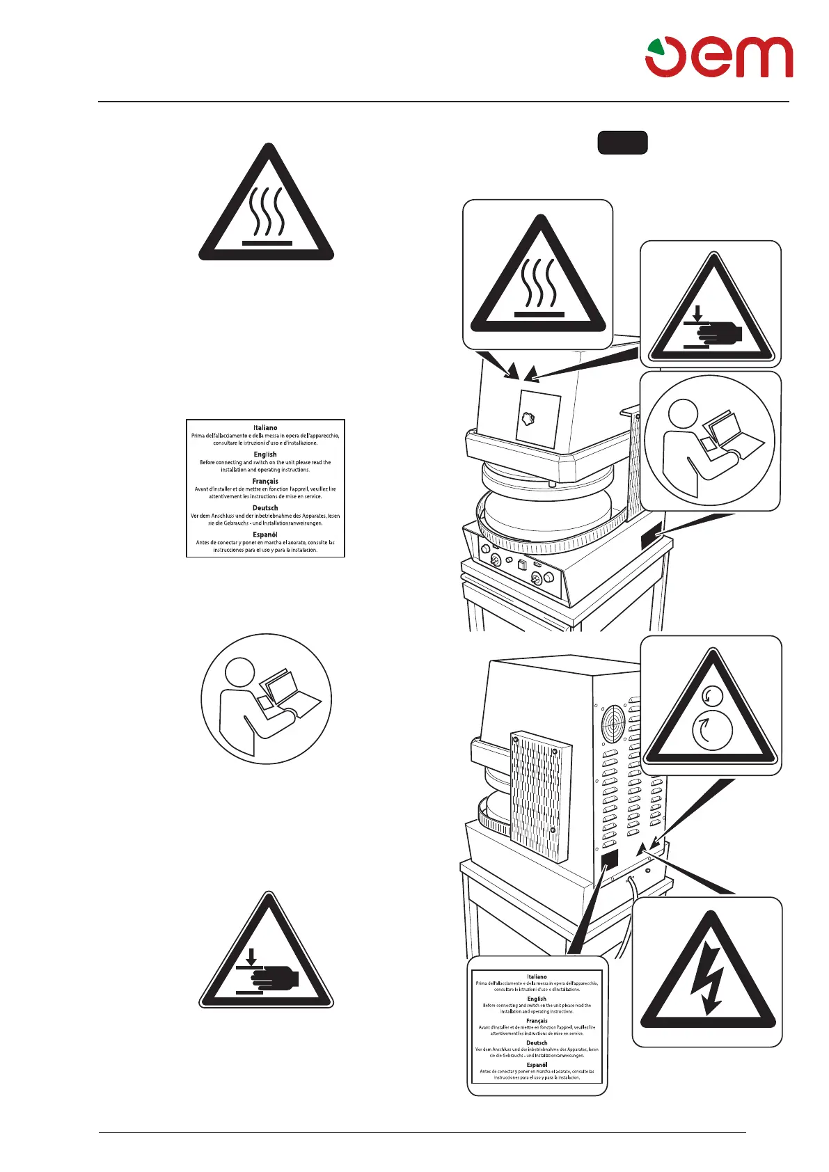 der Steuertafel und weist auf die Quetschgefahr für