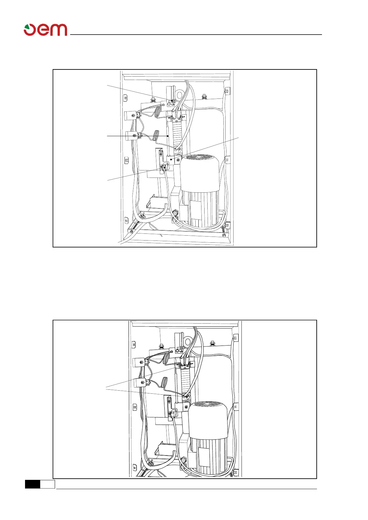 La posición alta del plato inferior es detectada por el sensor [1] cuando intercepta la varilla [2]