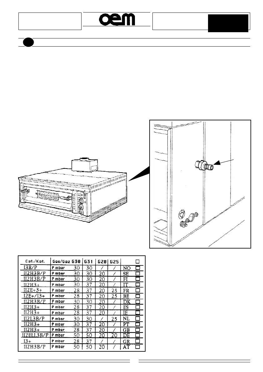 El horno debe estar alimentado con un tipo de gas adecuado (ver plaqueta características - Fig.