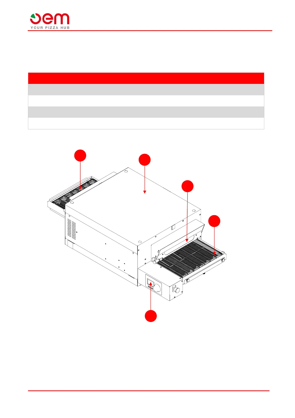 The oven is made of the following key parts: