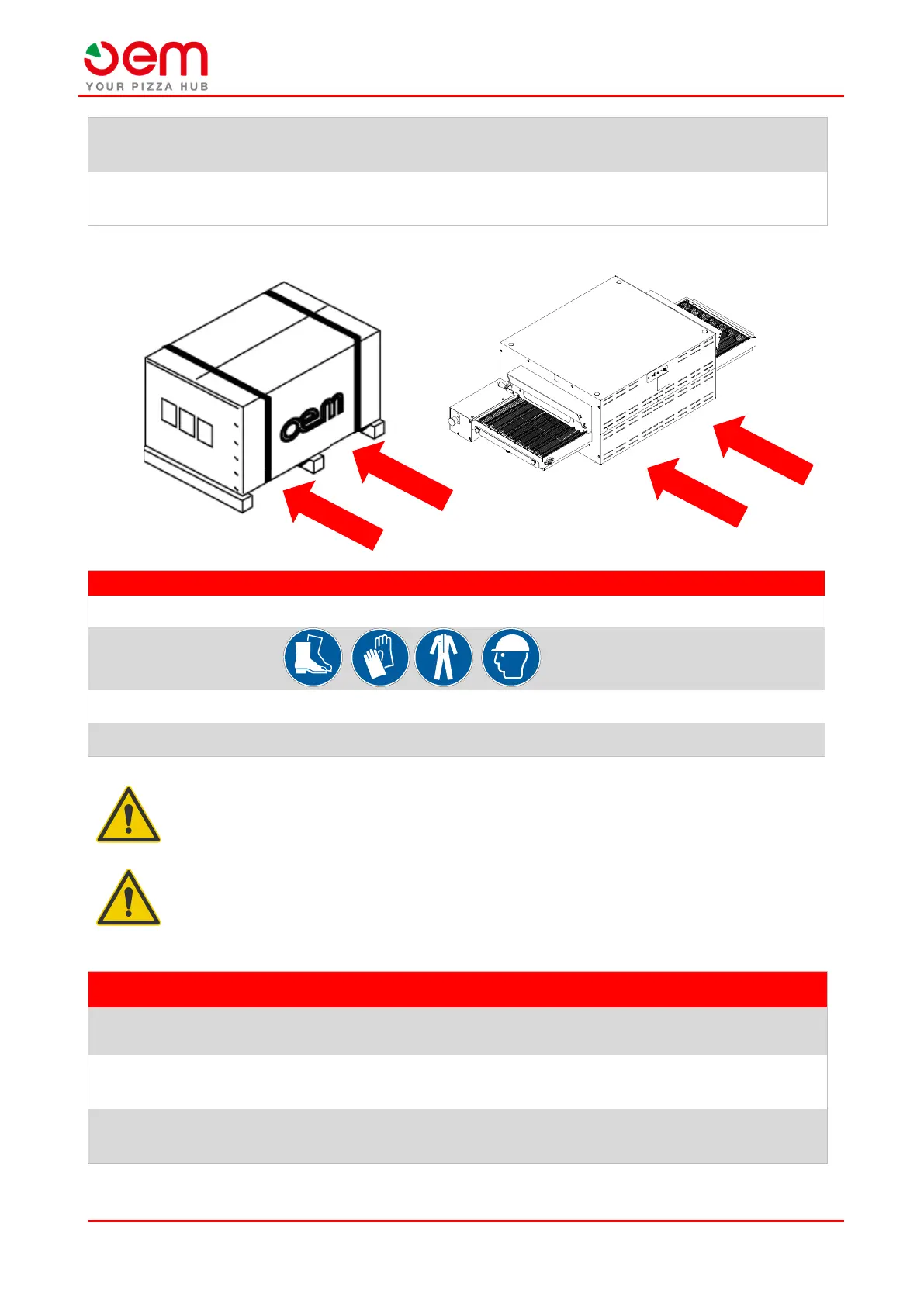 Use only suitable and approved lifting means, compatible for the size and weight of the machine; do
