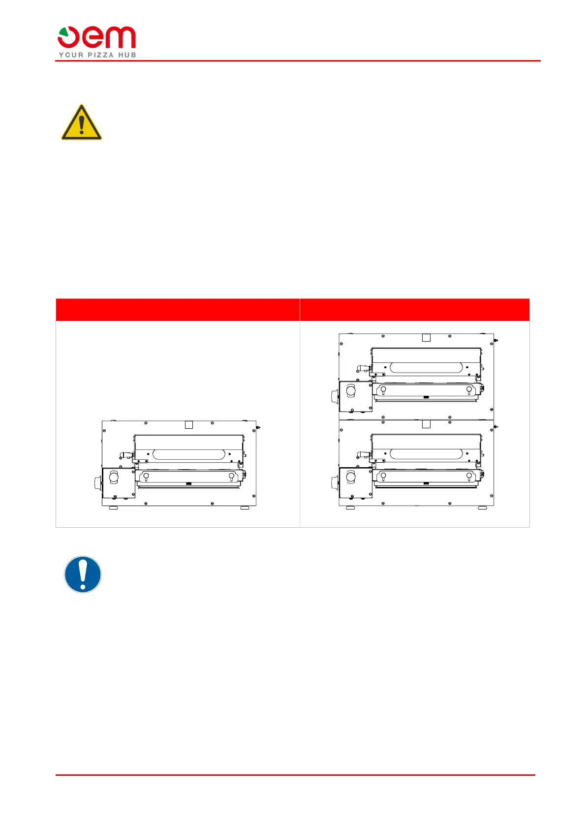 The assembly of the oven includes two types of configuration: